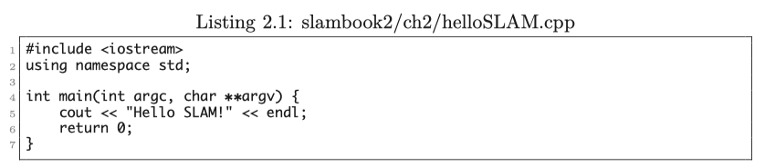 많은 컴퓨터 책처럼, HelloSLAM 프로그램을 작성해 봅시다. 그러나 이것을 하기 전에 프로그램이 무엇 인지에 대해 이야기해 봅시다.