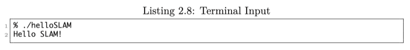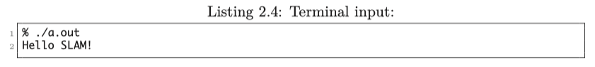 우리가 예상한 대로 이 프로그램은 "Hello SLAM!"을 출력하여 올바르게 실행되고 있음을 알려줍니다.