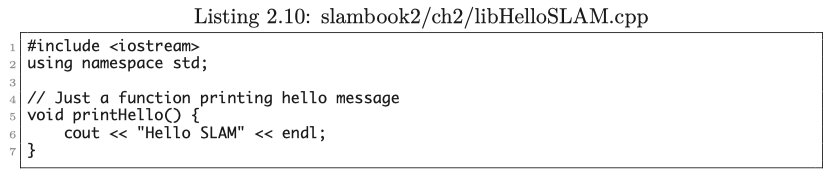 7. * hello SLAM를 개선하여 작은 라이브러리로 만들고 로컬 하드 드라이브에 설치해봅시다. 그런 다음 새 프로젝트를 만들고 find_package를 사용하여 라이브러리를 찾은 다음 호출합니다.