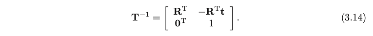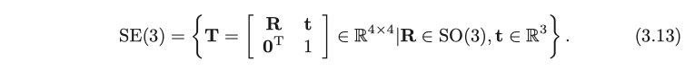 변형 행렬 T와 관련하여 특별한 구조가 있습니다. 왼쪽 상단 구석은 회전 행렬입니다. 오른쪽은 이동 벡터이고, 왼쪽 하단 모서리가 0이고 오른쪽 하단 모서리가 1입니다. 이 매트릭스는 Special Euclidean Group이라고도 합니다.