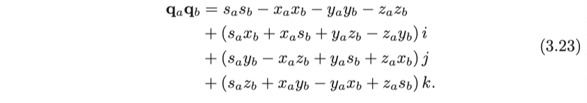 곱셈은 $ \mathbf {q}_a $의 각 항목과 $ \mathbf {q}_b $의 각 항목의 곱셈이고, 마지막으로, 허수 부분은 식 (3.21)에 따라 수행됩니다.
