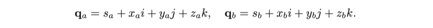 쿼터니언 사이의 연산은 다음과 같이 나타낼 수 있습니다.