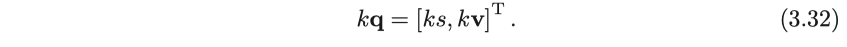 이러한 형식은 여러 개의 변환이 연속적으로 진행되면 식이 너무 복잡해집니다. 따라서 homogeneous 좌표와 변환 행렬을 도입하여 식 (3.9)를 다음과 같이 다시 쓰고자 합니다.