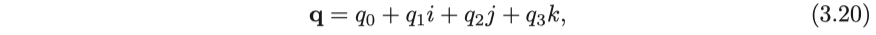 - 쿼터니언이 3차원 점을 회전시킨 후에 결과가 3차원 공간 점에 해당하는 imaginary 쿼터니언임을 증명하십시오. (3.33 참고)