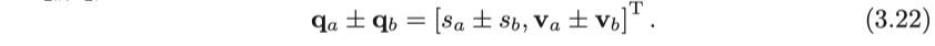 쿼터니언 $ \mathbf {q}_a, \mathbf {q}_b $의 더하기 및 빼기는 다음과 같습니다.