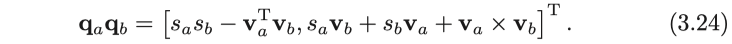 곱셈은 $ \mathbf {q}_a $의 각 항목과 $ \mathbf {q}_b $의 각 항목의 곱셈이고, 마지막으로, 허수 부분은 식 (3.21)에 따라 수행됩니다.